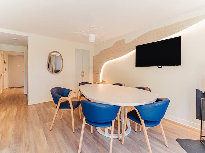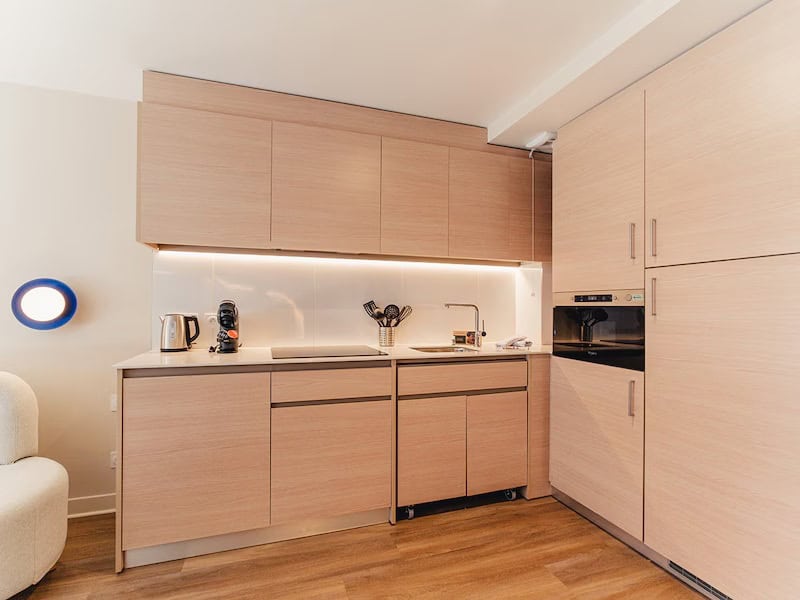 מטבח מאובזר: מקרר, מיקרוגל, מדיח כלים, מכונת קפה פילטר, מצנם, קומקום, מכונת קפה NESCAFÉ Dolce Gusto, כיריים חשמליות.