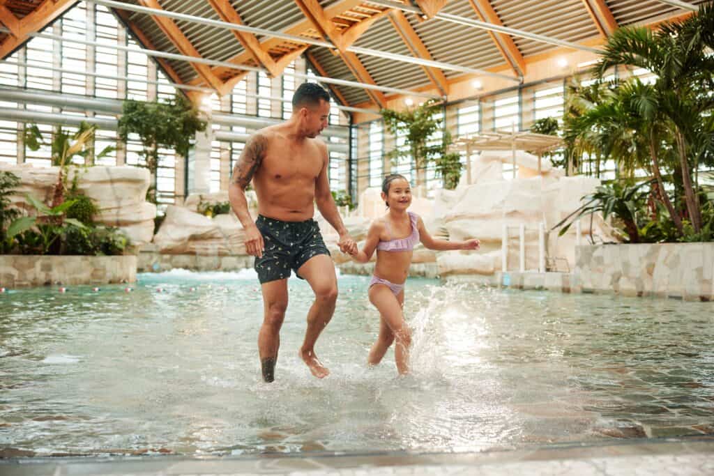 ערב מסיבת בריכה בילוי ערב בבריכה המרכזית ובבריכת הגלים עם מוזיקה, מופע אור ואפקטים מיוחדים. זמין ב-1 Parcs: FRANCE: Les Landes de Gascogne